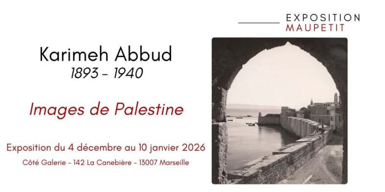 L’Exposition est l’occasion de découvrir l’ouvrage d’Ahmed Mrowat et Sandrine Mansour,consacré à la première femme photographe professionnelle en Palestine, découverte en 2006, grâce à un lot de cartes postales signées  « Karimeh Abbud – Lady Photographer ». Paru aux éditions Images plurielles, il donne à voir les visages et paysages du pays avant la Nakba de 1948.
