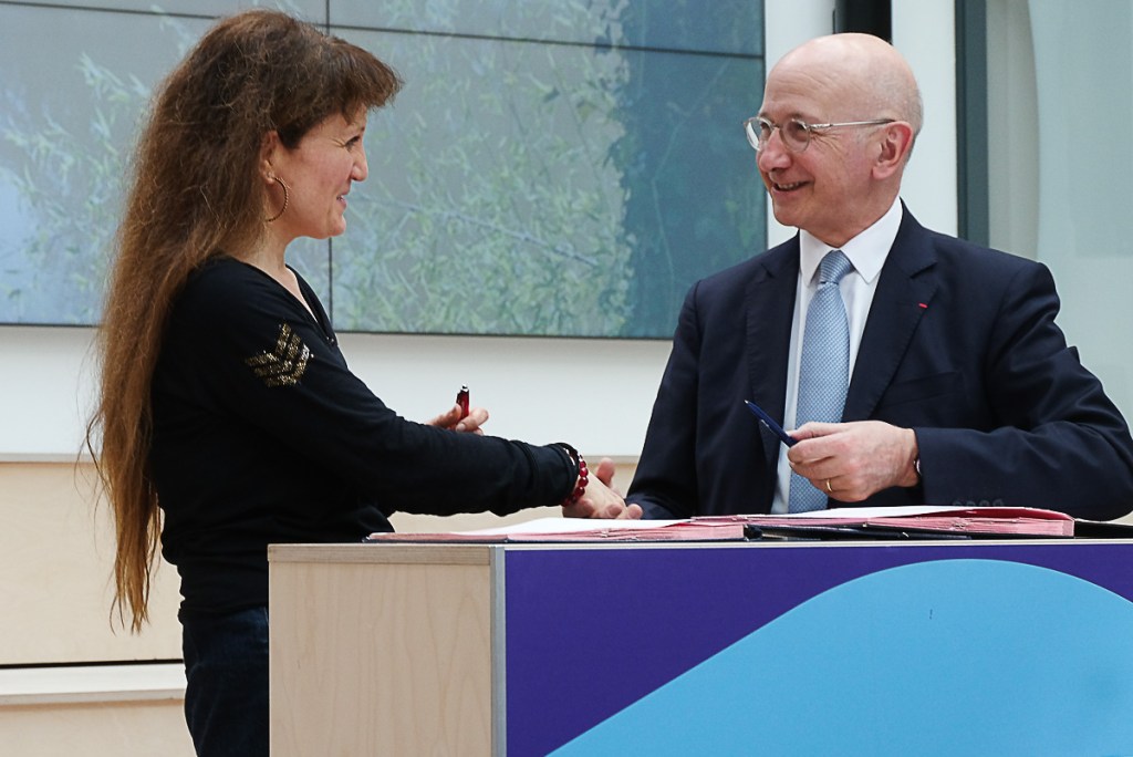 Le jeudi 4 avril, l’AG a été accueillie à l’espace LÉONARD par Céline Acharian, directrice générale de la Fabrique de la Cité. Présentée par Françoise Moulin-Civil, la nouvelle convention entre France Universités et l’AAPC a été signée par Marie-Cécile Naves, déléguée générale de France Université et le président Jean-Louis Bancel. Les Colloques de la prochaine saison ont été préentés ainsi que les sessions du Foyer de Création dans ce beau moment partagé.